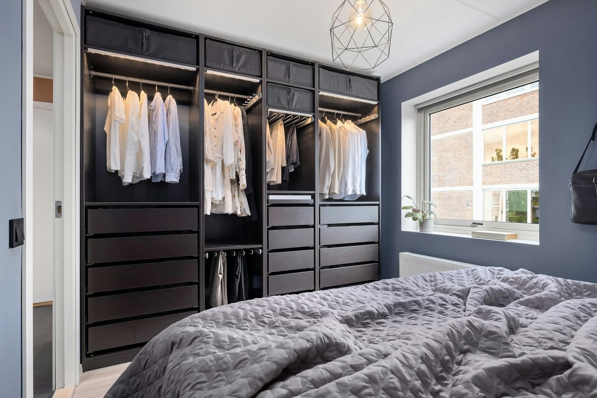 Før du begynner, bør du se på rommets form, lys og funksjon. Skal garderoben stå på soverommet, i gangen eller i et eget walk-in-område? Mål veggen der skapene skal stå, og vurder hvordan du best kan utnytte høyden og bredden.
